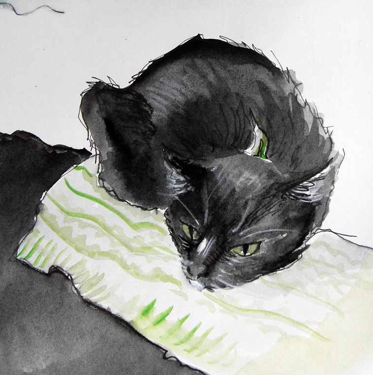 My host’s cat. I painted this for her… but the cat decided to pick the most recalcitrant pose imaginable.