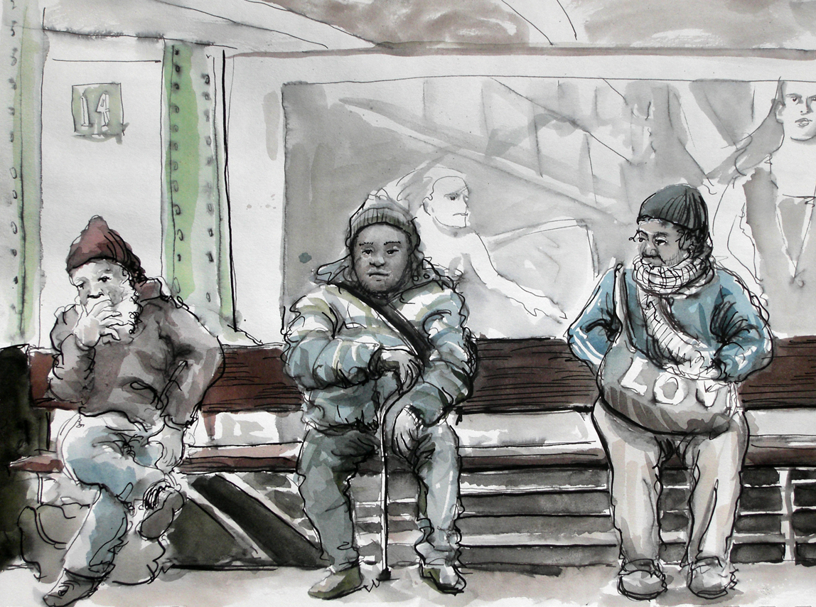 In the union square station there’s a small area with no purpose other than a way to get from one line to another. For whatever reason MTA has placed two benches there. Because you can’t see any tracks there’s no point in waiting for a train there, so most people who sit there aren’t actually going anywhere. I’ve met some interesting people there including this gentlemen who was quite an intellectual and with whom I had some interesting conversations: