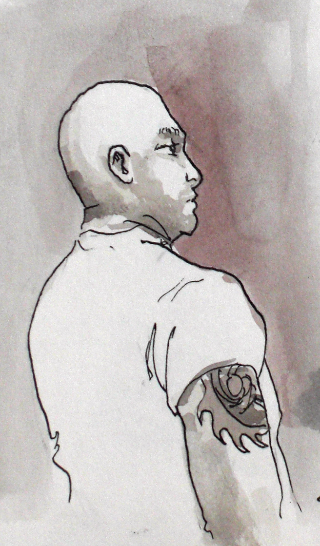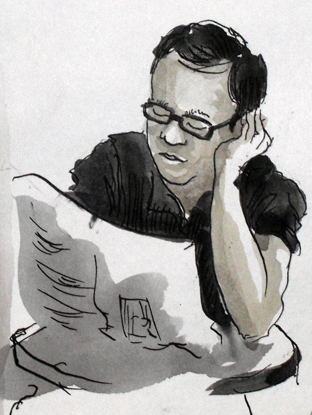 A question that’s been on my mind: can you make an interesting image out of an otherwise uninteresting scene? Some things are naturally interesting to look at. Take for instance this man, who stood in the doorway to the cafe while he lit his pipe: