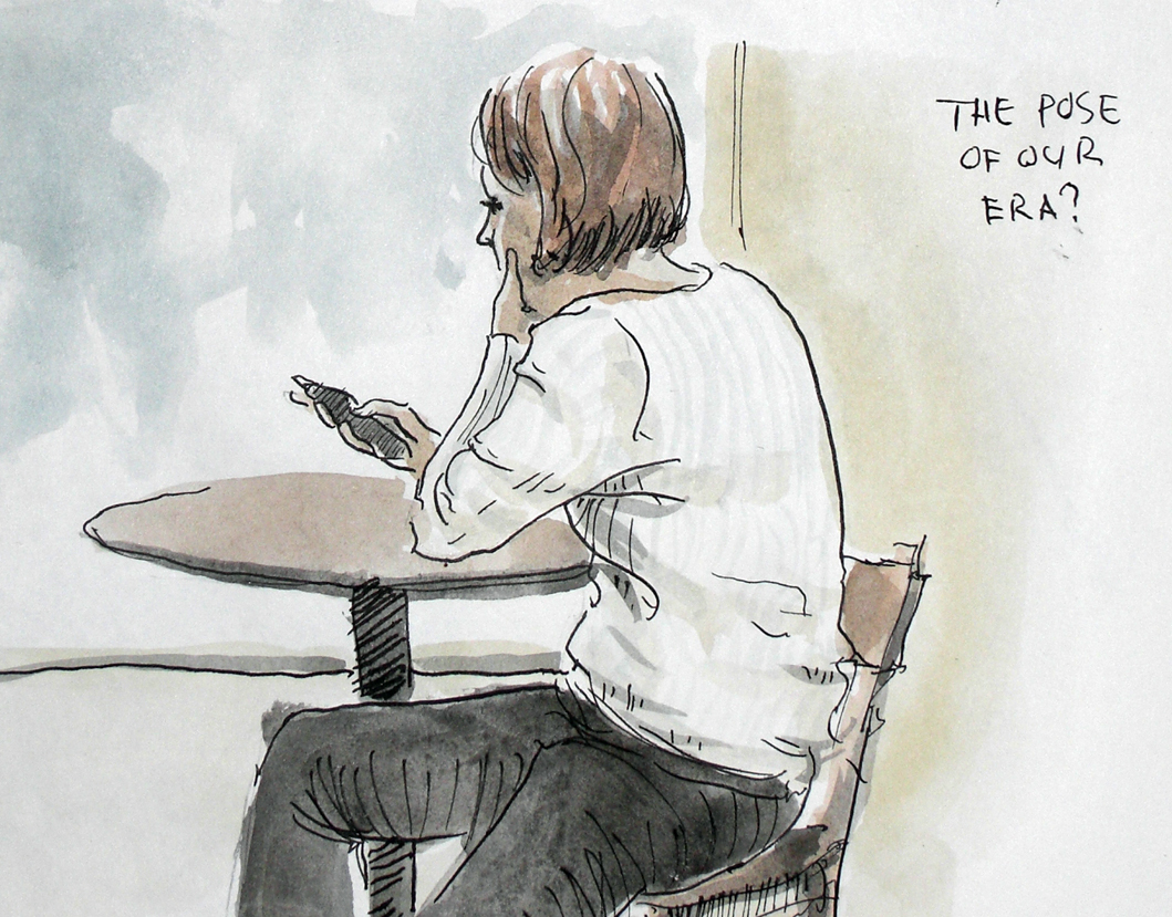 Seriously, I’ve drawn so many people looking at their phones like this… it’s like the modern day Egyptian pose. People will wonder why we always stood like this.