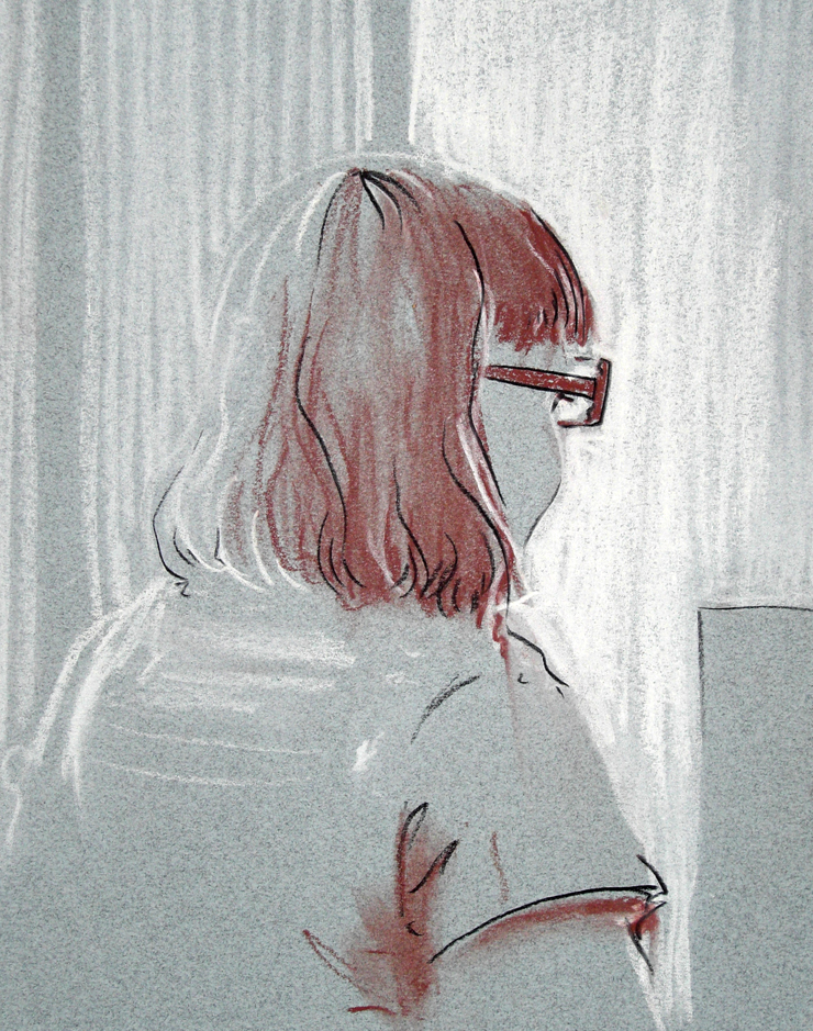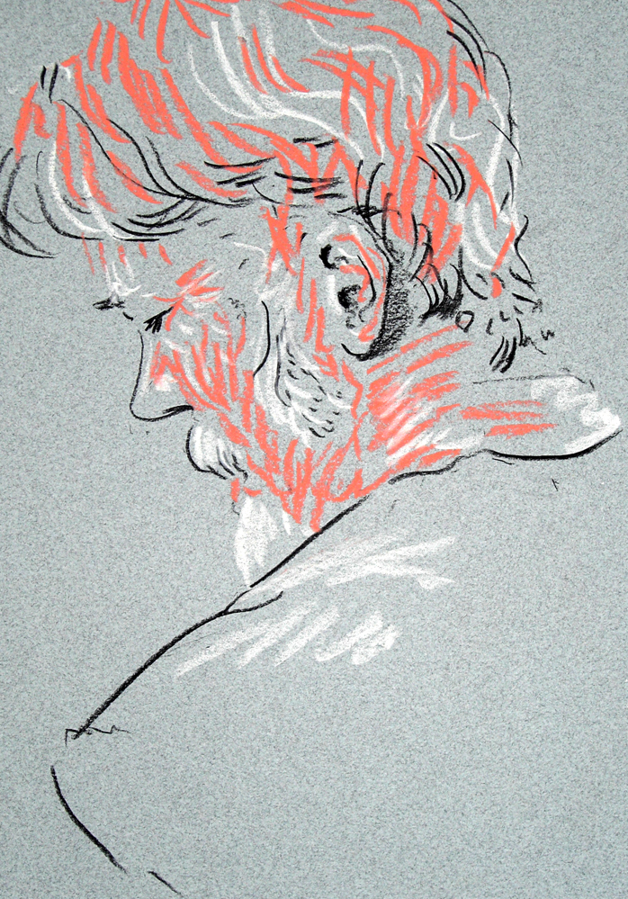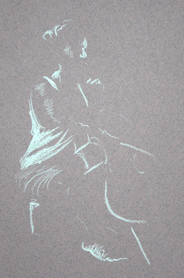 The same girl here in highlights only (a little hard to make out). You can’t paint in highlights with black ink or watercolors, so this is fun for a change!
