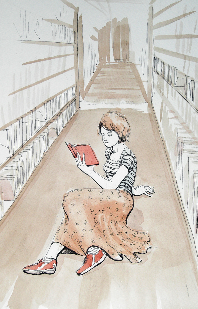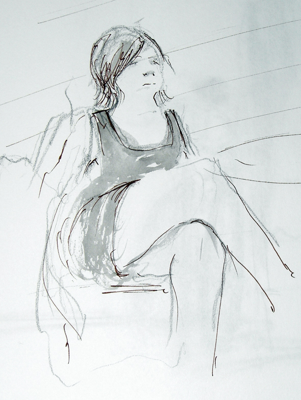 Girl in the Austin public library… I didn’t actually stand there drawing her – that would be a little creepy – so this is an attempt to draw from memory after just a quick glimpse while walking past the aisles. At any rate it was a cool pose.