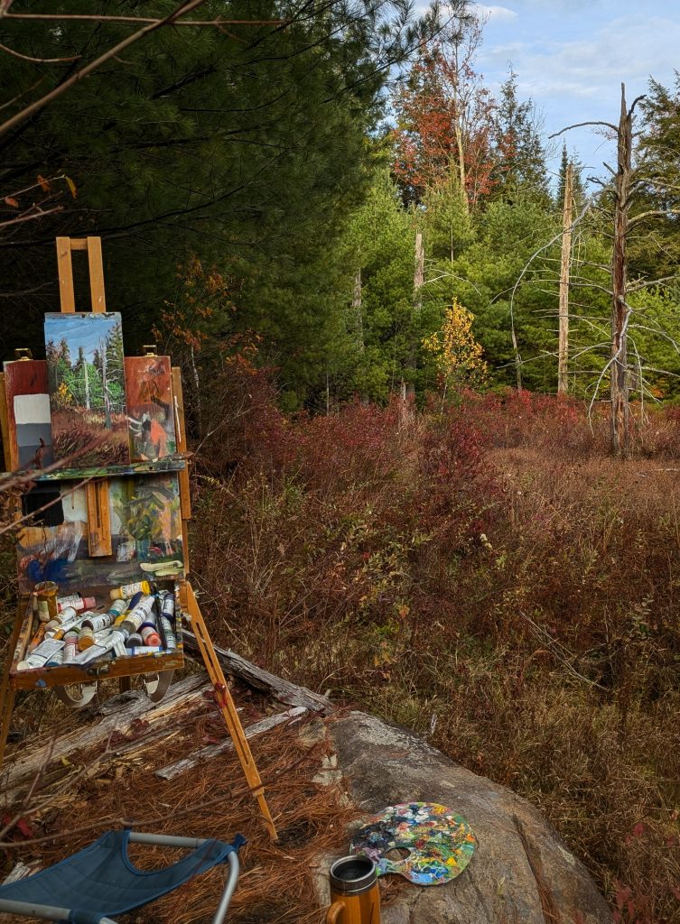 I’ve painted from almost this exact spot before, just facing a little more due south. This time it was late afternoon so I faced east, knowing the sun would be getting lower behind me by the end of the painting. It didn’t disappoint, lighting up the corner of the painting really nicely at the end.